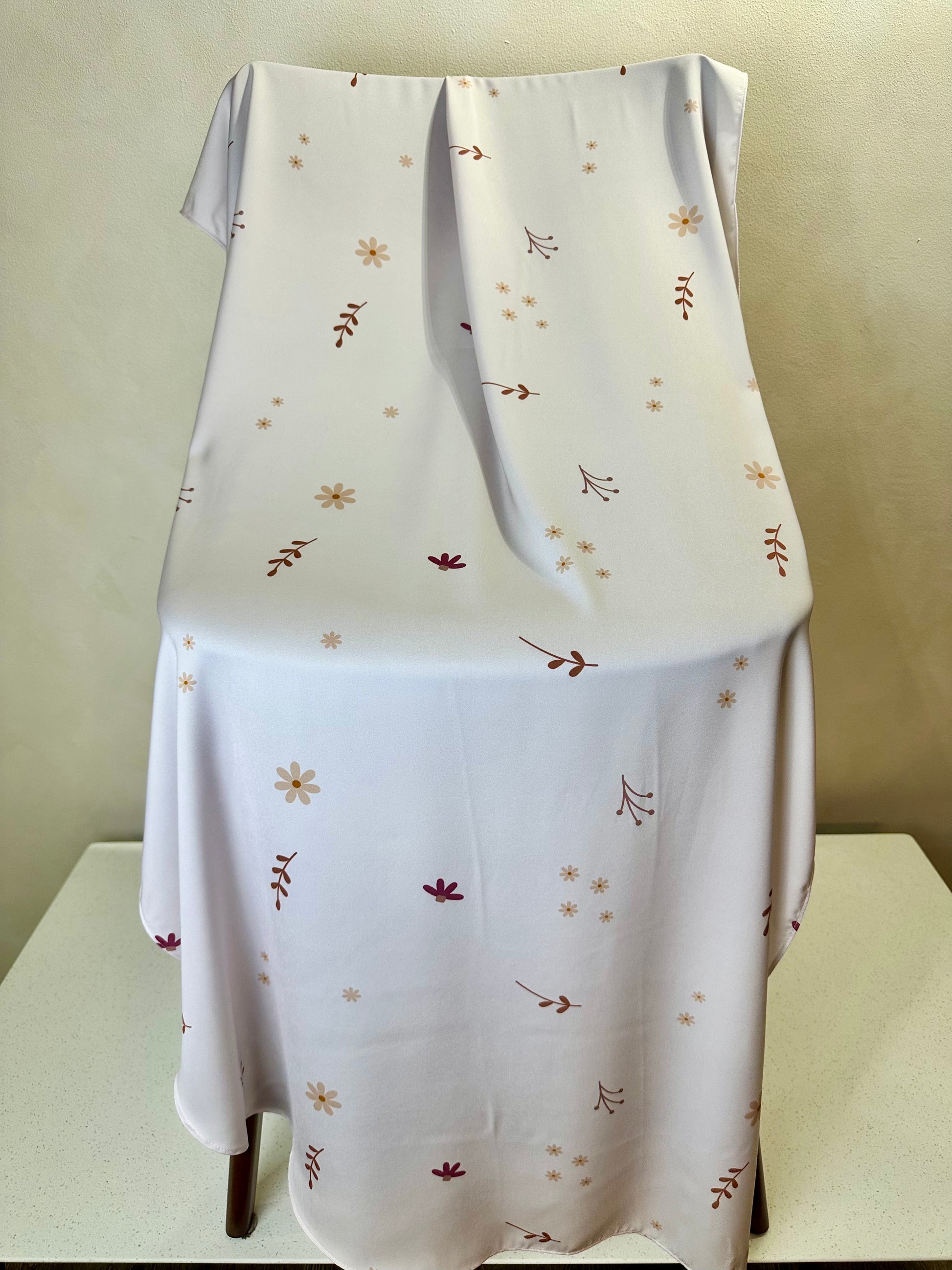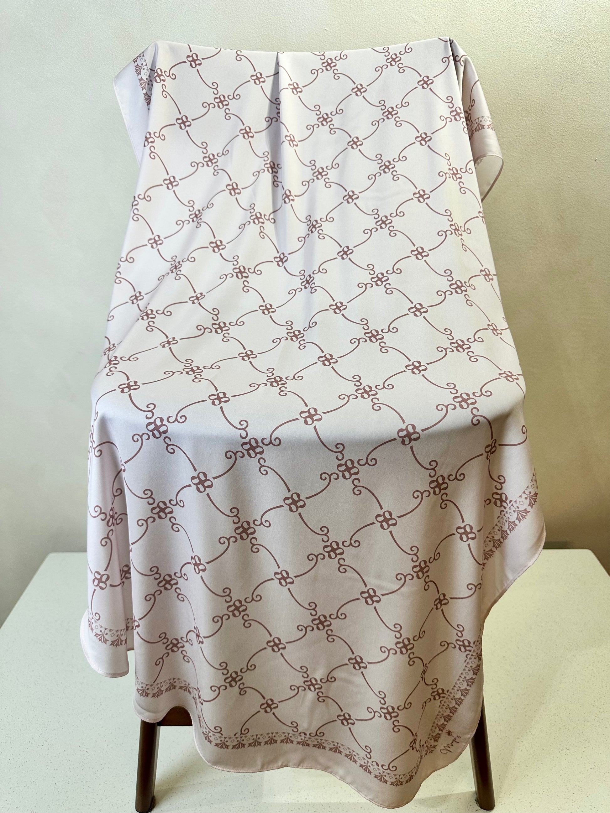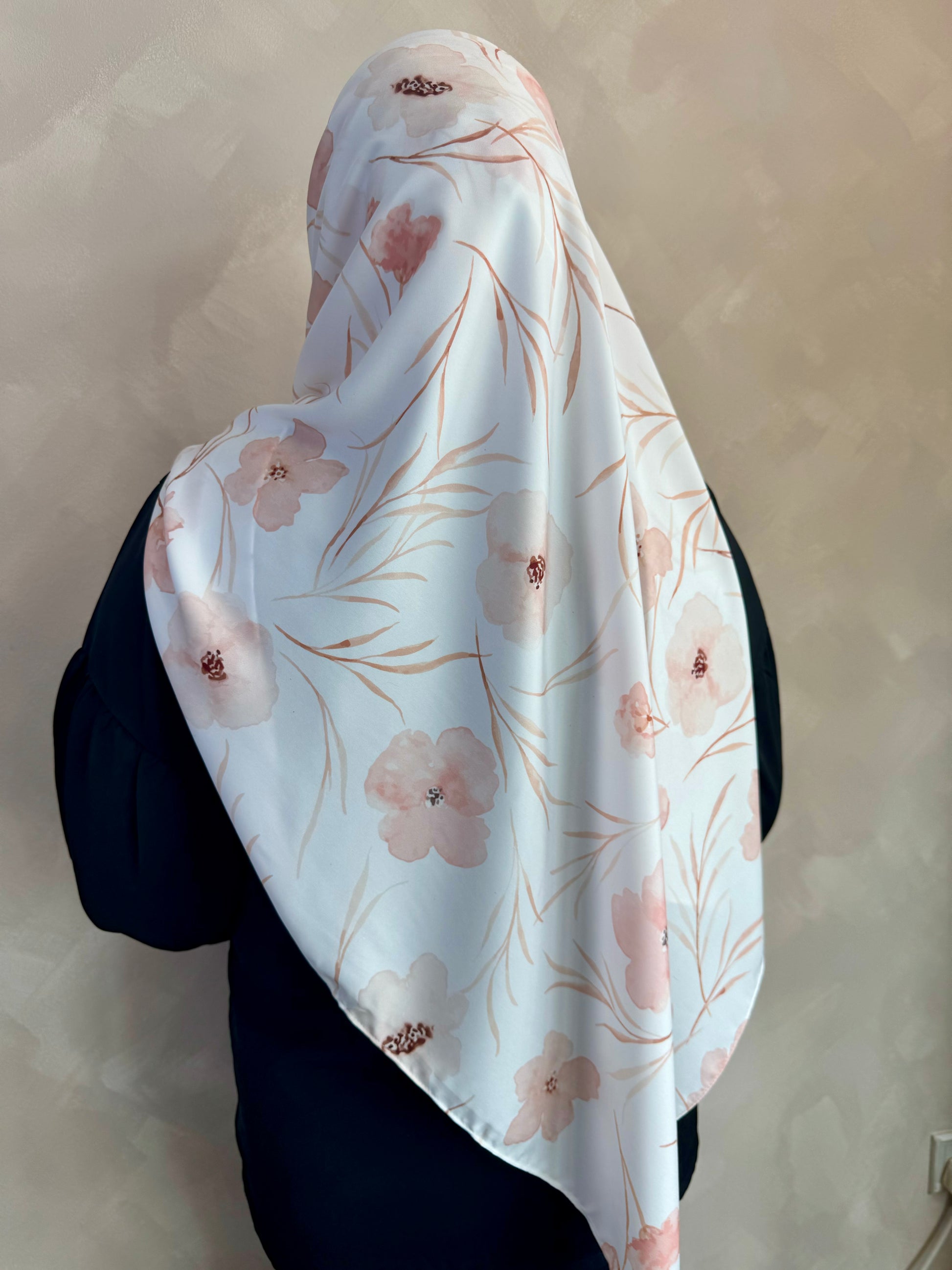 Satin matte hijabs with floral and monogram patterns offer a luxurious yet understated look. The satin matte fabric has a smooth, soft texture with a subtle sheen, giving it an elegant finish without being too shiny. Floral designs add a delicate, feminine touch, while monogram patterns bring a chic, personalized style. These hijabs combine sophistication and comfort, perfect for both everyday wear and special occasions. The satin matte fabric drapes beautifully, making it easy to style while adding a refined, fashion-forward element to any outfit.