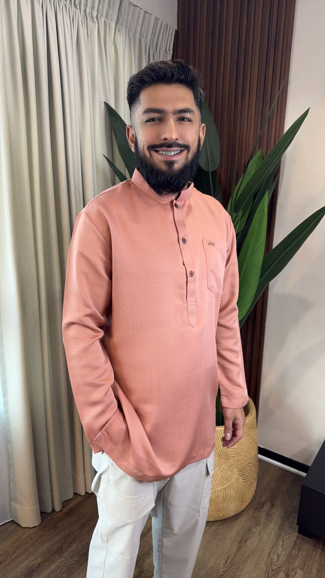The Fusion Noor Men's Kurta made from cotton sakura material, with a mix of Pakistani and Malay traditional fusion, is an innovative blend of two rich cultures, creating a stylish, comfortable, and culturally resonant garment. Here's an overview of what such a fusion piece might look like